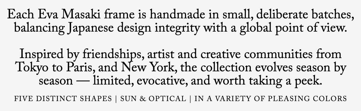 Shop Eva Masaki's hand crafted eyewear. ͏ ͏ ͏ ͏ ͏ ͏ ͏ ͏ ͏ ͏ ͏ ͏ ͏ ͏ ͏ ͏ ͏ ͏ ͏ ͏ ͏ ͏ ͏ ͏ ͏ ͏ ͏ ͏ ͏ ͏ ͏ ͏ ͏ ͏ ͏ ͏ ͏ ͏ ͏ ͏ ͏ ͏ ͏ ͏ ͏ ͏ ͏ ͏ ͏ ͏ ͏ ͏ ͏ ͏ ͏ ͏ ͏ ͏ ͏ ͏ ͏ ͏ ͏ ͏ ͏ ͏ ͏ ͏ ͏ ͏ ͏ ͏ ͏ ͏ ͏ ͏ ͏ ͏ ͏ ͏ ͏ ͏ ͏ ͏ ͏ ͏ ͏ ͏ ͏ ͏ ͏ ͏ ͏ ͏ ͏ ͏ ͏ ͏ ͏ ͏ ͏ ͏ ͏ ͏ ͏ ͏ ͏ ͏ ͏ ͏ ͏ ͏ ͏ ͏ ͏ ͏ ͏ ͏ ͏ ͏ ͏ ͏ ͏ ͏ ͏ ͏ ͏ ͏ ͏ ͏ ͏ ͏ ͏ ͏ ͏ ͏ ͏ ͏ ͏ ͏ ͏ ͏ ͏ ͏ ͏ ͏ ͏ ͏ ͏ ͏